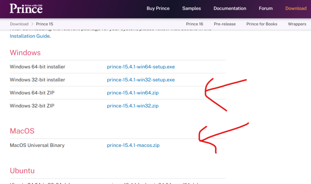 なので、結論として、PrinceXML を公式サイトからダウンロードしてインストールするだけで解決します。