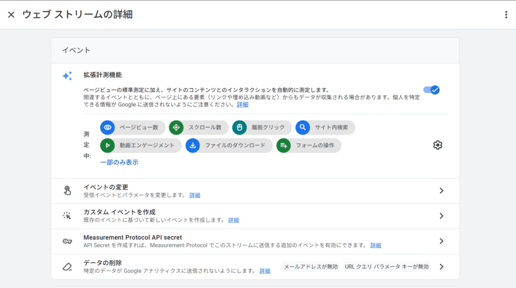 実際、私の環境で GA4 のデータストリームを開いたときの画面がこちらです。