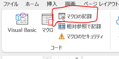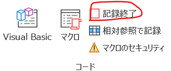 ・そのまま「記録終了」というボタンが、もともと「マクロの記録」であったところと同じところにあるので、「記録終了」を押してください。
