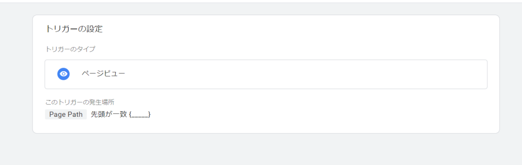 トリガータイプ: 「ページビュー」もしくは「一部のページビュー」を選択