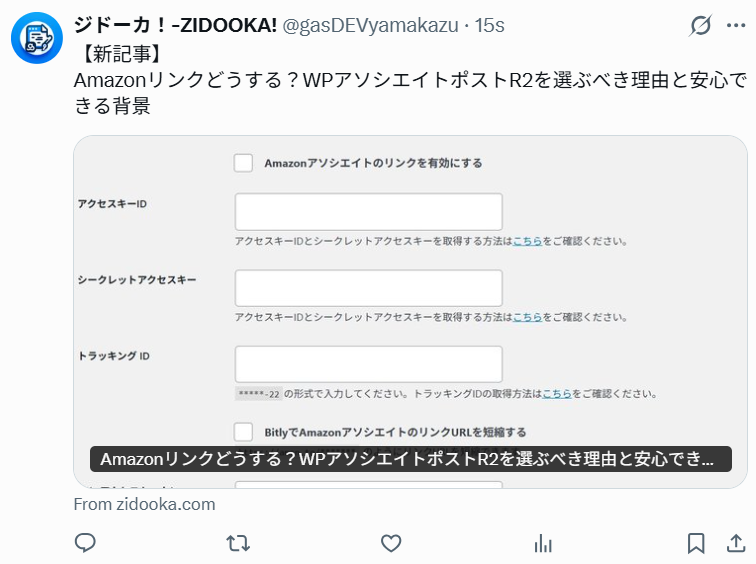 With this setup, even if WordPress is compromised, your X account remains safe. Also, if X changes its API specs, you only need to fix the GAS side.
