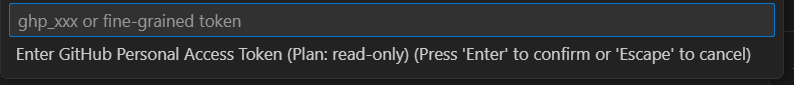 通知または設定画面から「Set Token」を選択し、作成したトークン(ghp_xxx など)を貼り付けてEnterで確定します。