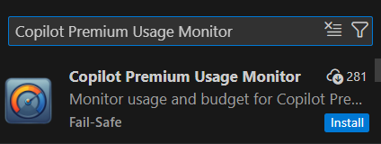 - Copilot Premium Usage Monitor(VS Code Marketplace) https://marketplace.visualstudio.com/items?itemName=fail-safe.copilot-premium-usage-monitor
