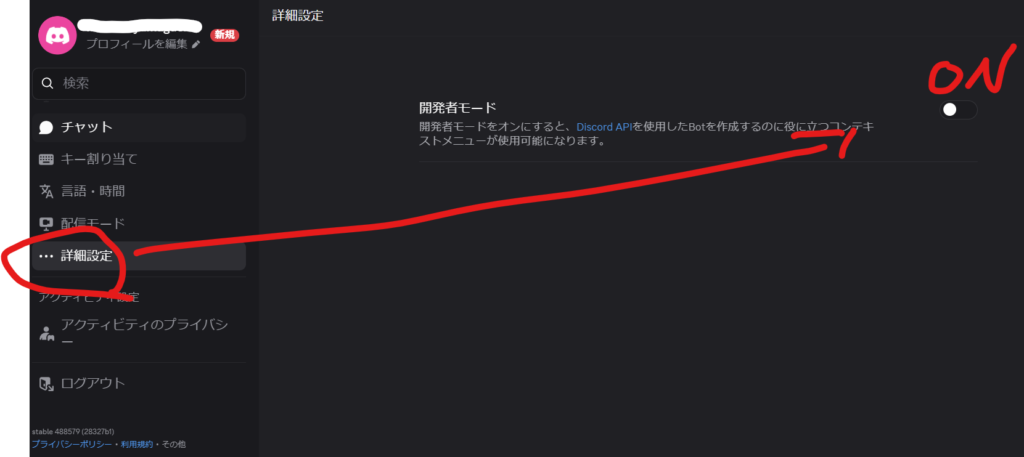 詳細設定に行き、開発者モードを「ON」にする